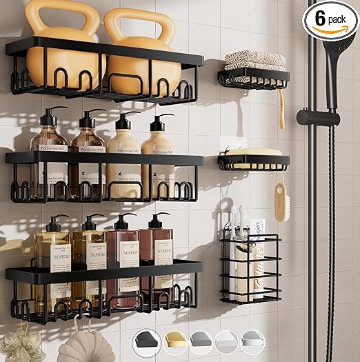 Veken Stainless Steel Shower Caddy 6-Pack, Adhesive Rustproof Shelves Rack with Soap Holder, Large Capacity Bathroom Organizers and Storage, No Drilling Wall-Mounted Kitchen & Home Decor, Bath Decor
